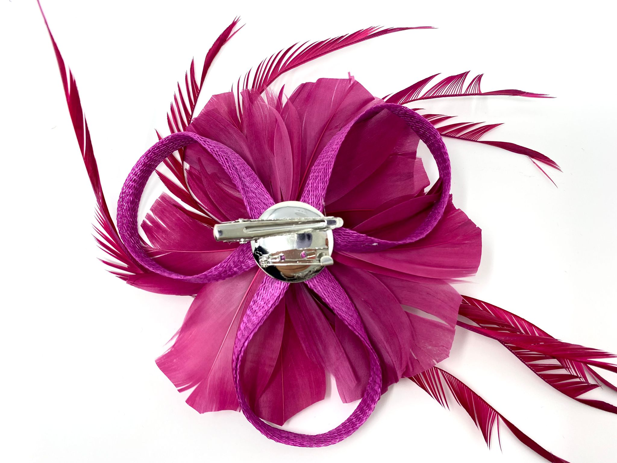 This elegant magenta feather fascinator could be the perfect finishing touch to special outfits