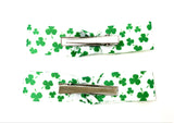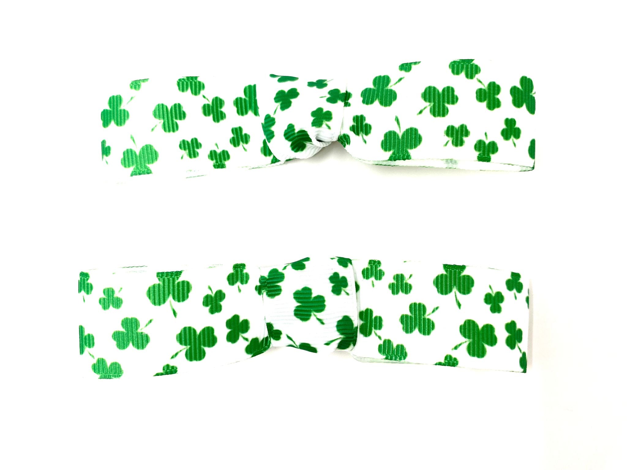 These green and white shamrock bow hair clips would be perfect accessories for a trip to Ireland or for St Patricks Day celebrations!